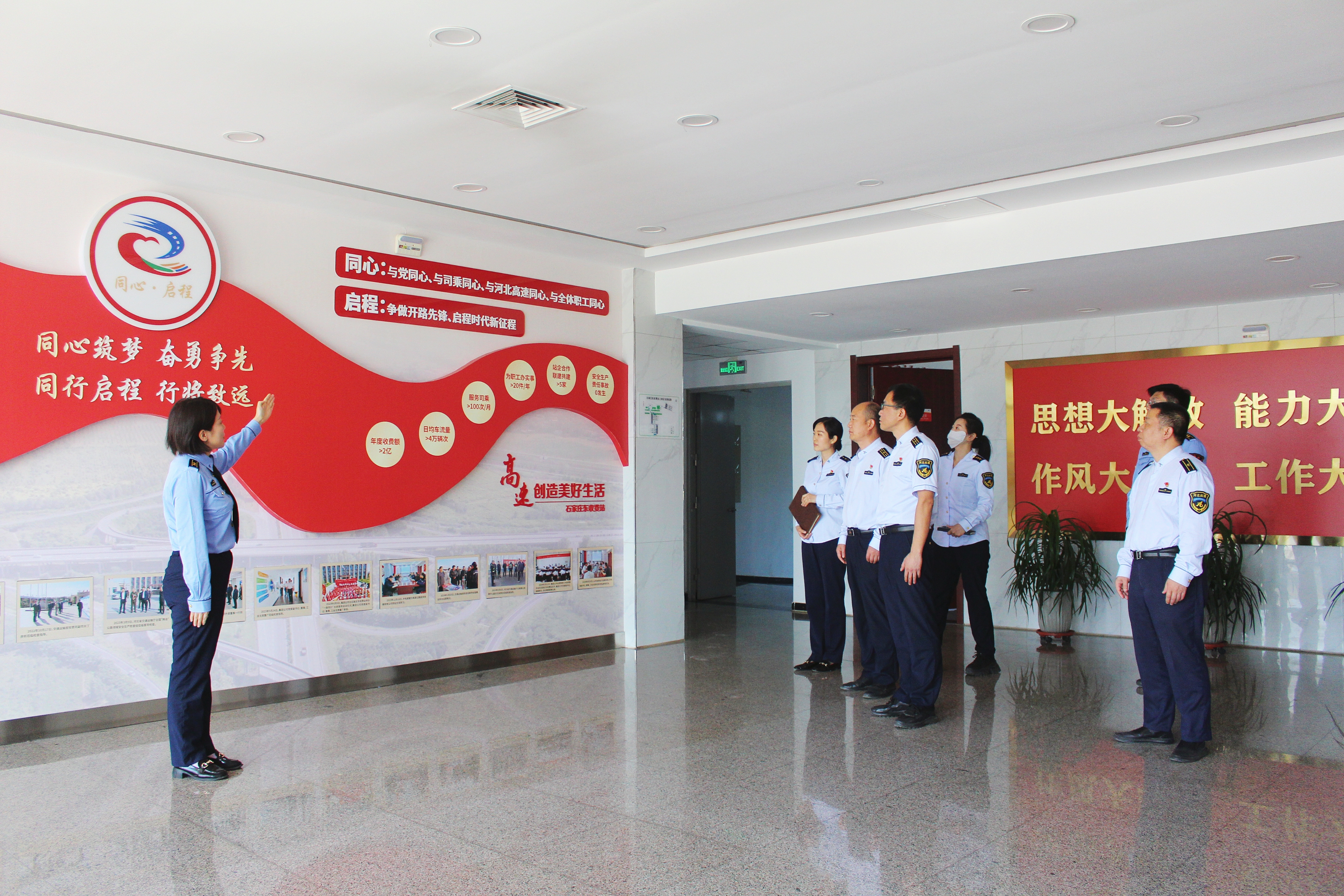 在讲解员的引导下,交流组实地参观了“同心·启程”党建品牌主题墙、党员活动室、同行文化墙、安全文化墙等特色阵地,详细了解了党建品牌创建、阵地规范化建设及文化宣传的创新举措。同时,交流组对爱心妈妈小屋、廉洁辅导站、职工活动室等特色功能区的建设使用情况进行了调研,对站点党建与业务融合的成果给予高度评价。