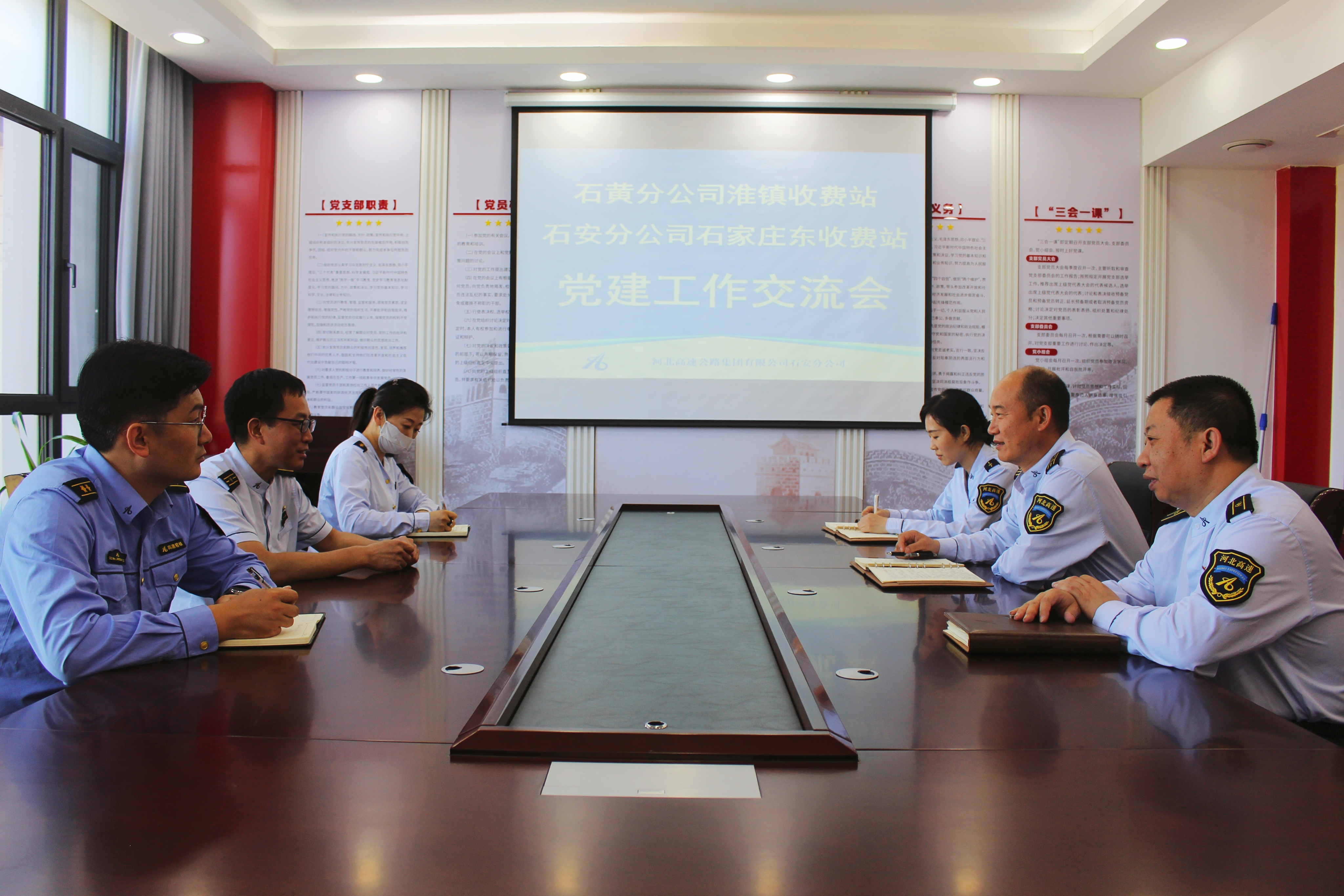 座谈会上,双方重点围绕基层党支部建设、党员教育管理、主题党日开展、收费管理及安全保畅等工作展开交流,既分享优秀经验,又剖析短板不足。淮镇收费站交流组表示,石家庄东收费站党建工作的品牌化、规范化建设成效显著,其创新思路和务实举措具有重要的借鉴意义,将结合实际优化本站党建工作机制。