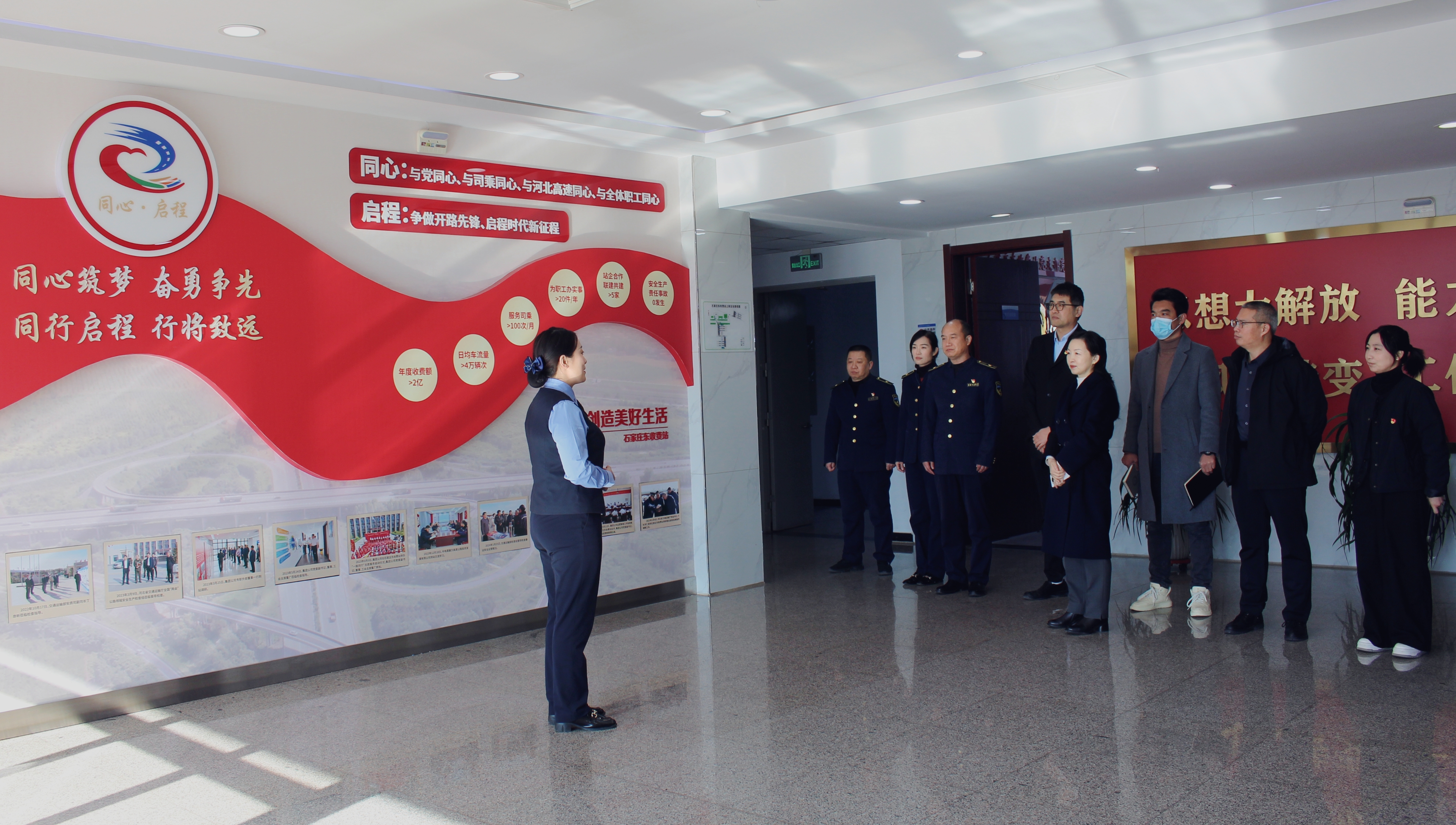 11月18日上午,青银分公司、物流有限公司一行到石家庄东收费站参观交流党建工作。分公司党委组织部部长范彩君陪同。