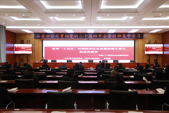 为深入学习贯彻党的二十届四中全会精神,12月18日,石安分公司开展学习贯彻党的二十届四中全会精神集中学习。分公司党委委员、副总经理陈东坡作开班动员,中层干部、全体在岗党员及预备党员100余人参加。