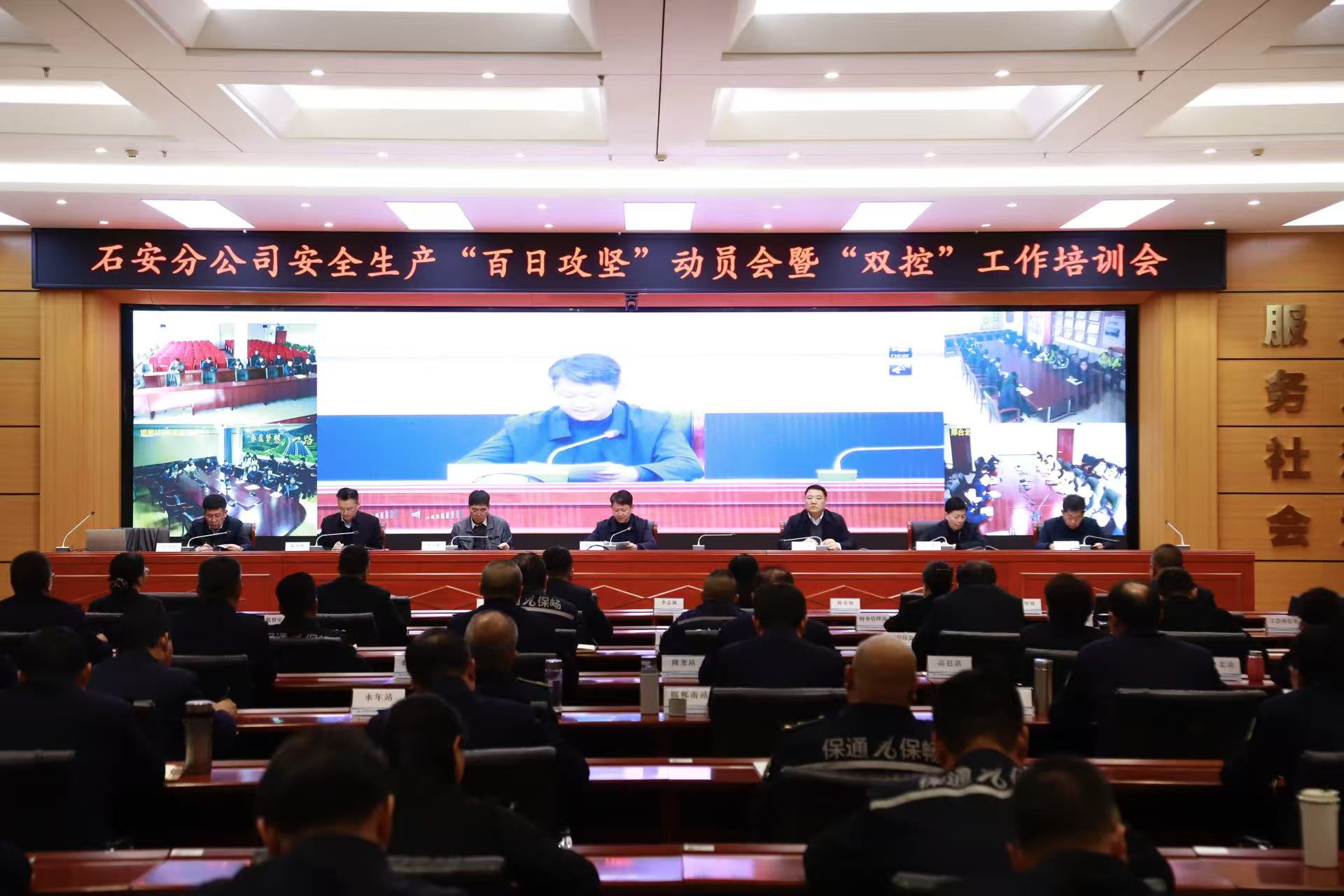 为深入贯彻落实集团公司安全生产工作部署,进一步夯实安全管理基础,1月8日,石安分公司组织召开安全生产“百日攻坚”动员会暨“双控”工作培训会,全面启动“百日攻坚”专项行动,并对双控机制建设进行再深化、再推进。分公司党委书记陈园明出席并讲话,领导班子成员参加。