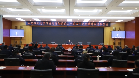 为深入学习贯彻党的二十届四中全会精神,12月18日,石安分公司开展学习贯彻党的二十届四中全会精神集中学习。分公司党委委员、副总经理陈东坡作开班动员,中层干部、全体在岗党员及预备党员100余人参加。 [详细]