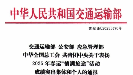 近日,交通运输部、公安部、应急管理部、中华全国总工会、共青团中央联合发文,对在2025年春运“情满旅途”活动中涌现出的成绩突出集体和个人予以通报表扬。河北高速集团石安分公司石家庄南收费站光荣上榜,获评“成...[详细]